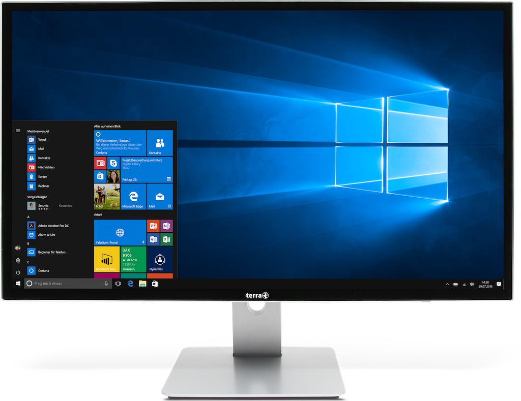 Højdejusterbar TERRA All in one PC med et hurtigt 1 TB SSHD (Solid State Hybrid Drive) i et meget stilfuldt, rammeløst design. Integreret WLAN og Bluetooth-funktion sikrer nem forbindelse til hjemmenetværk, smartphone og PAD.